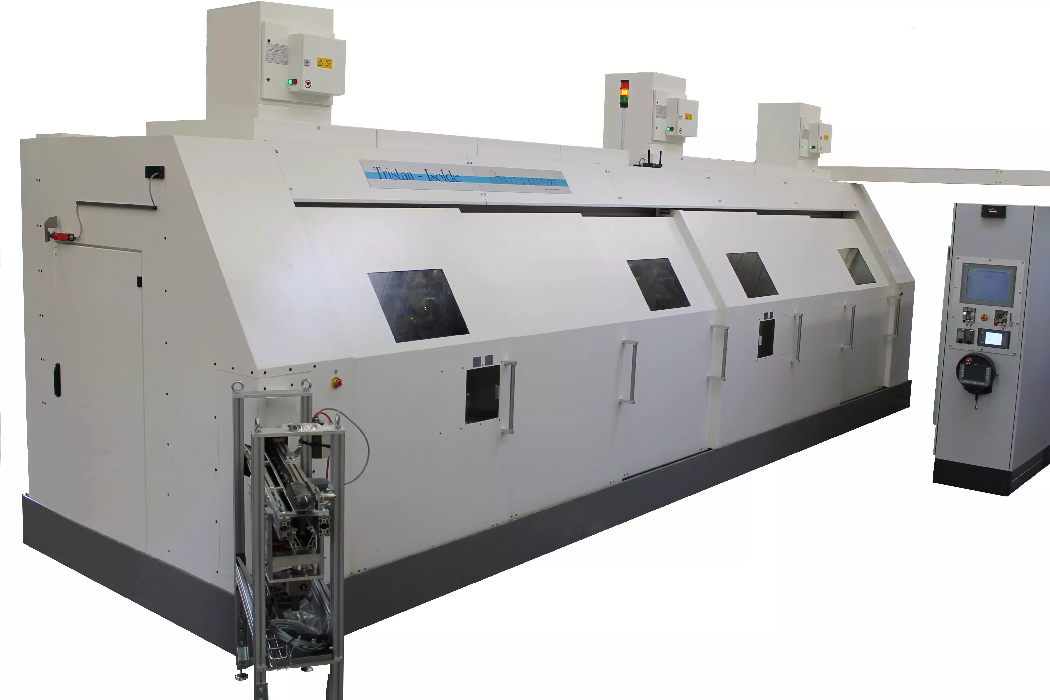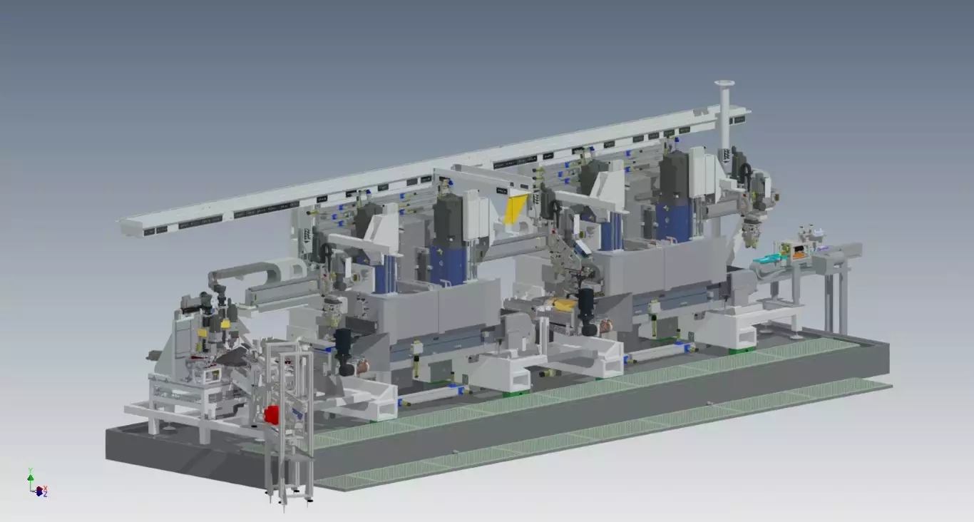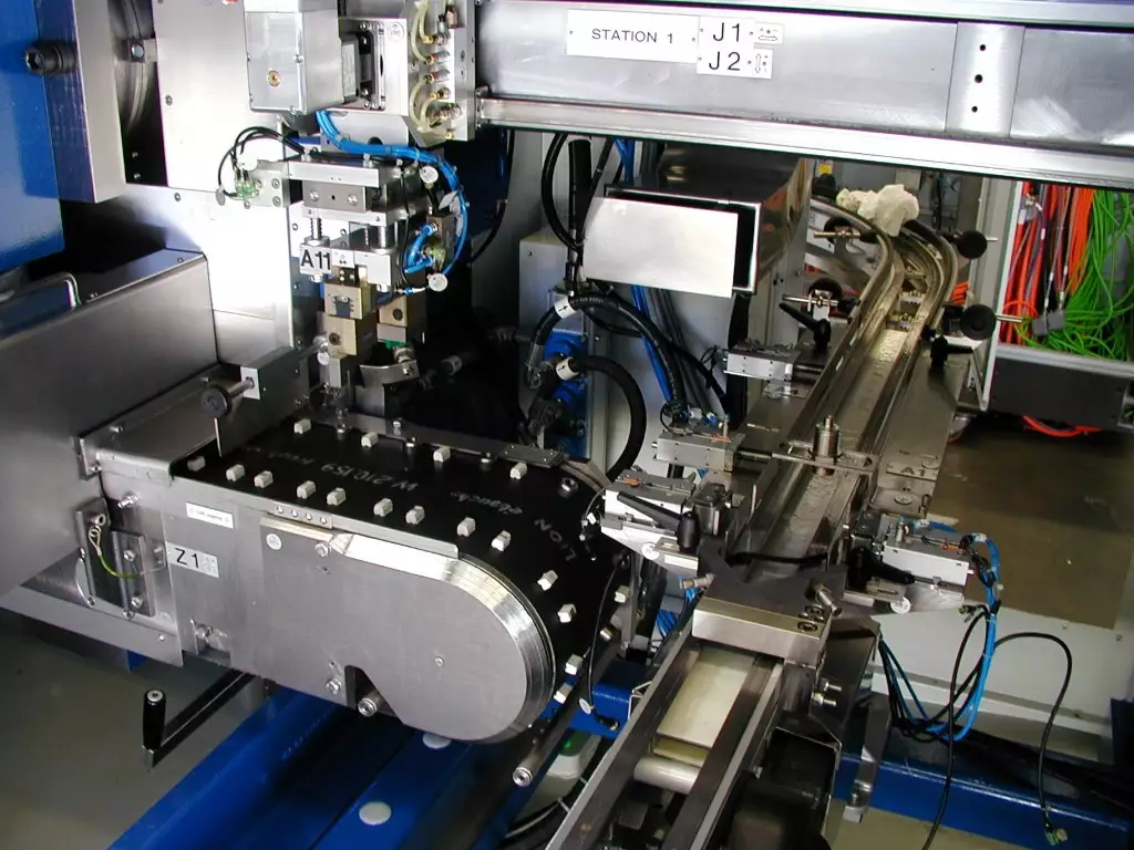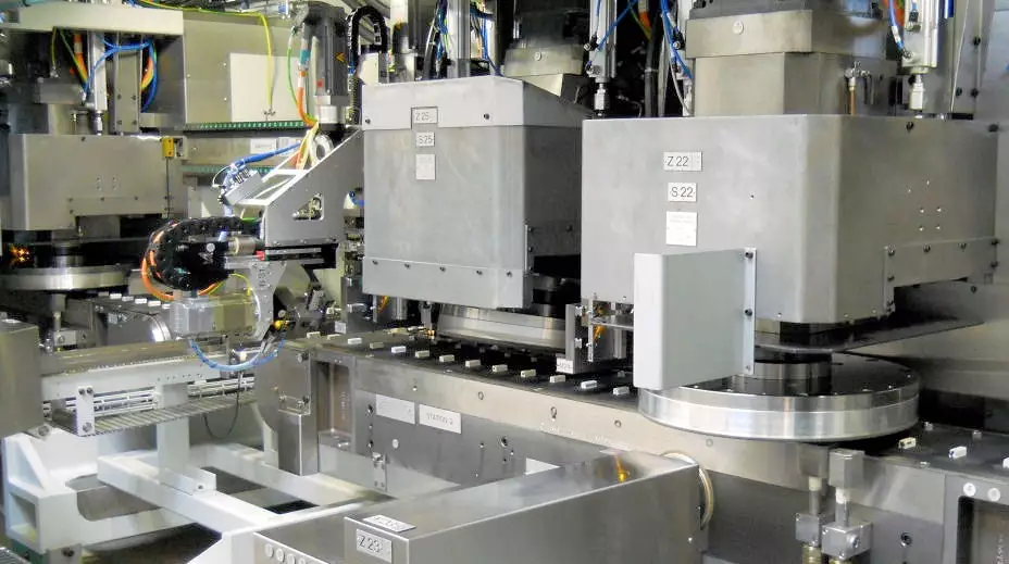 Machine à rectifier en continu 4 broches verticales + 1 station d’anglage. Application dédiée à l'usinage des bielles