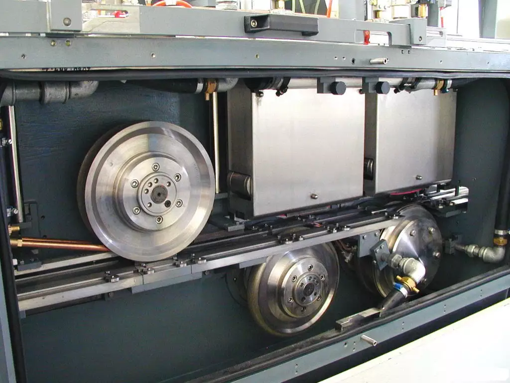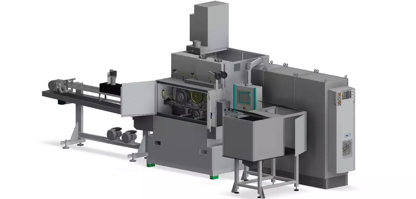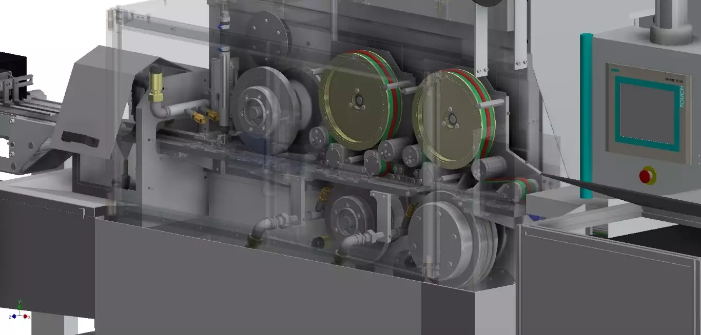 Machine à rectifier en continu équipée de 3 broches horizontales, dédiée à la rectification de profils en continu intérieur et extérieur simultanément