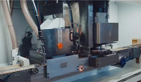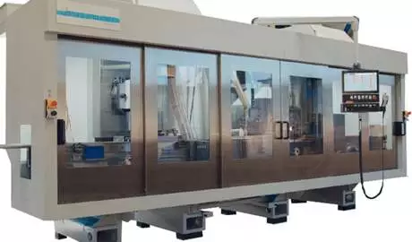 Rectifieuse en continu équipée d'une broche verticale, une broche horizontale et une station de brossage